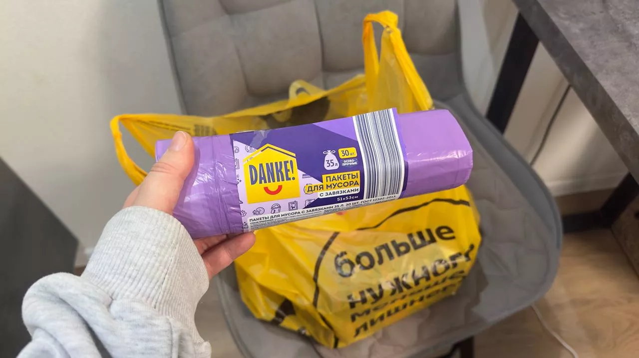 В корзину также попали пакеты для мусора с завязками. Они удобные, прочные, и цена меня приятно удивила. В Fix Price пакеты сложно отрываются и часто рвутся, буду тестировать эти. Надеюсь, они меня не разочаруют.