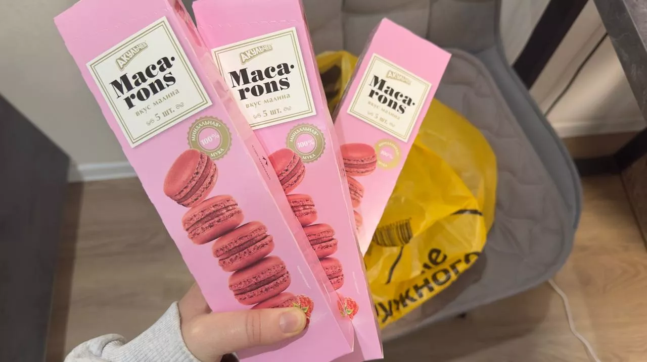 По дороге домой я зашла в Fix Price и купила три упаковки малиновых макарунов от «Акульчев». Всем советую попробовать именно этот вкус.