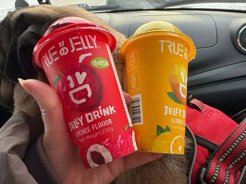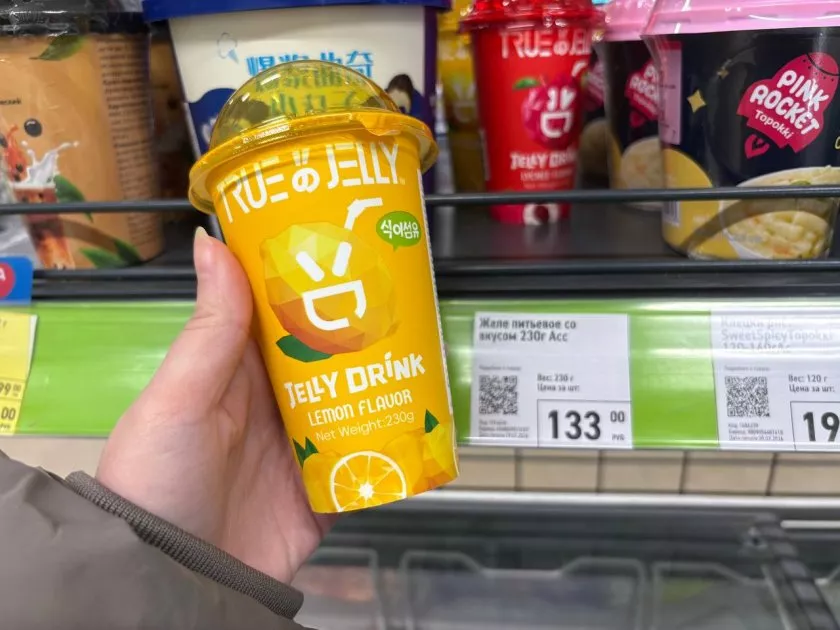 Также я увидела питьевое желе. Оно есть с двумя вкусами: личи и лимон. Взяла попробовать оба.