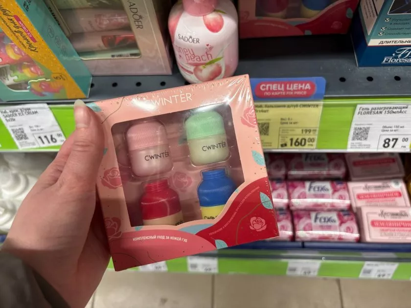 Рядышком стояли прекрасные бальзамы для губ. Их в комплекте 4 штучки - и каждый действует комплексно. Прекрасный вариант для подарка коллеге.