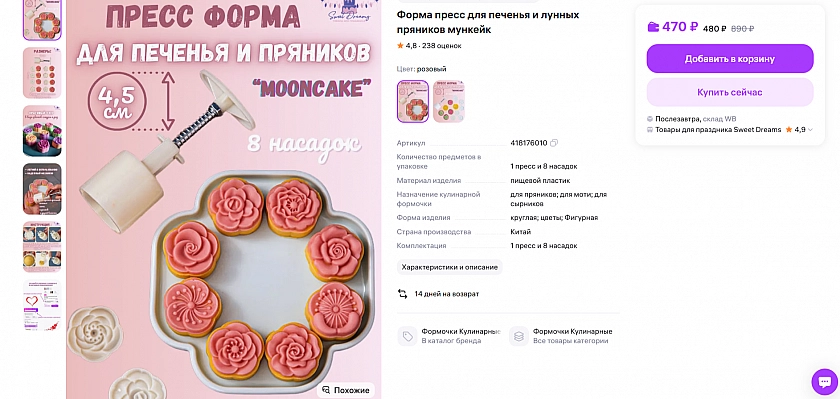 Подходит для лунных пряников, фигурных сырников, моти и другой выпечки. Проста в использовании и уходе. Отличный подарок для тех, кто любит домашнюю выпечку.