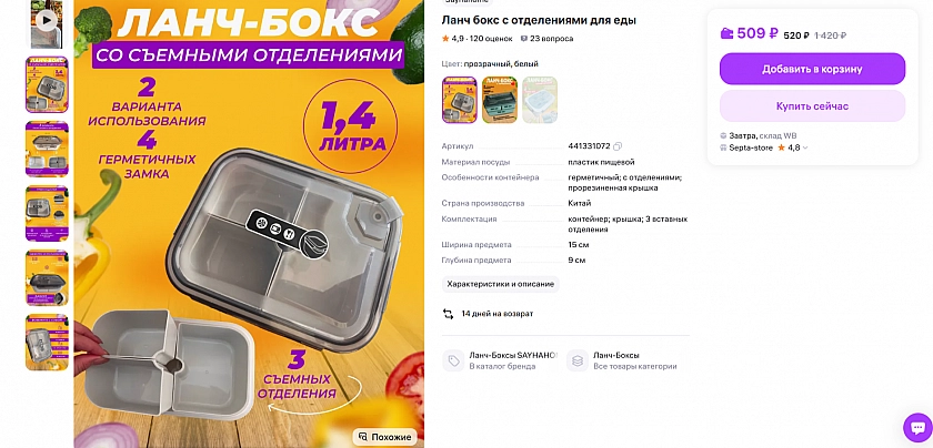 Подходит для разогрева в микроволновке и хранения в холодильнике. Крышка может служить держателем для смартфона. Удобен для офиса, школы, поездок и кемпинга.