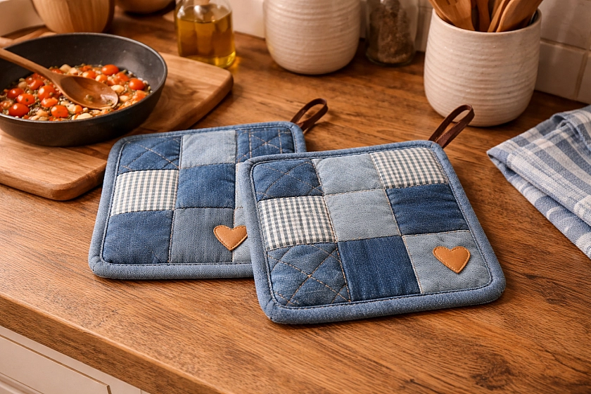 Один из самых практичных способов использования мелких лоскутов — создание кухонных аксессуаров. Плотные ткани, такие как деним или лен, подходят для изготовления долговечных подставок под горячее. Сшивание нескольких слоев материала обеспечивает надежную термоизоляцию, которая защищает мебель лучше покупных пластиковых изделий.