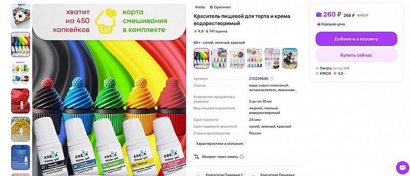 С помощью этих красителей я создаю яркие и красивые торты. Они легко дозировать и смешивать, а большая палитра цветов всегда выручает меня.