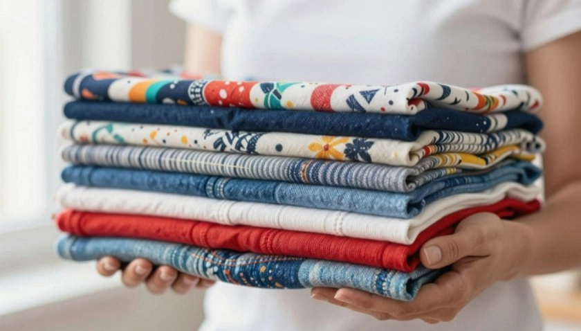 Этот метод мастерицы называют одним из самых удобных и безопасных для окружающей среды. Для начала материал режут на полоски шириной 4–6 см и длиной примерно по метру. С такими заготовками легко работать — они не сбиваются в комки и не путаются в процессе.