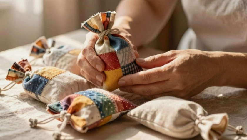 Многие помнят бабушкины платяные шкафы, где вместо едкого нафталина лежали душистые мешочки. Для их создания как раз подходят небольшие лоскуты. Внутрь засыпают лаванду, мяту или другие ароматные травы — и приятный запах в шкафу обеспечен, а моль обходит стороной.