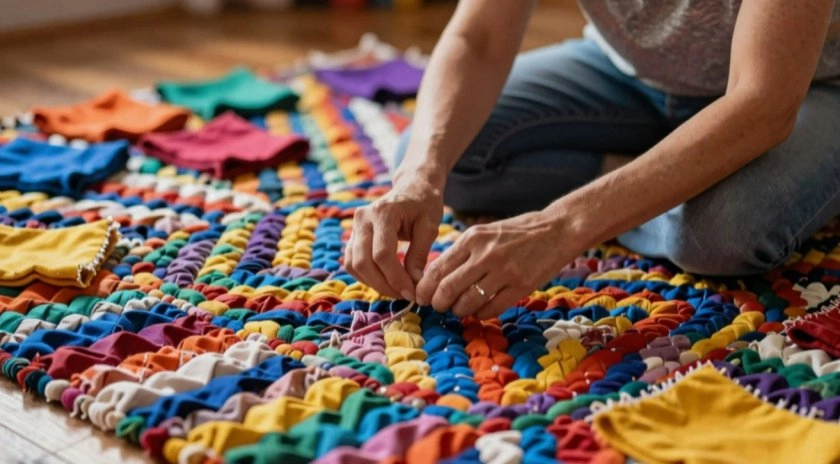 Старые вещи не обязательно выбрасывать. Из них можно сделать уютный коврик, который будет радовать глаз и греть ноги. Для этого не нужно уметь шить или вязать. Достаточно ножниц, иголки с ниткой и немного терпения. Главное — правильно подобрать материал и освоить простое плетение.
