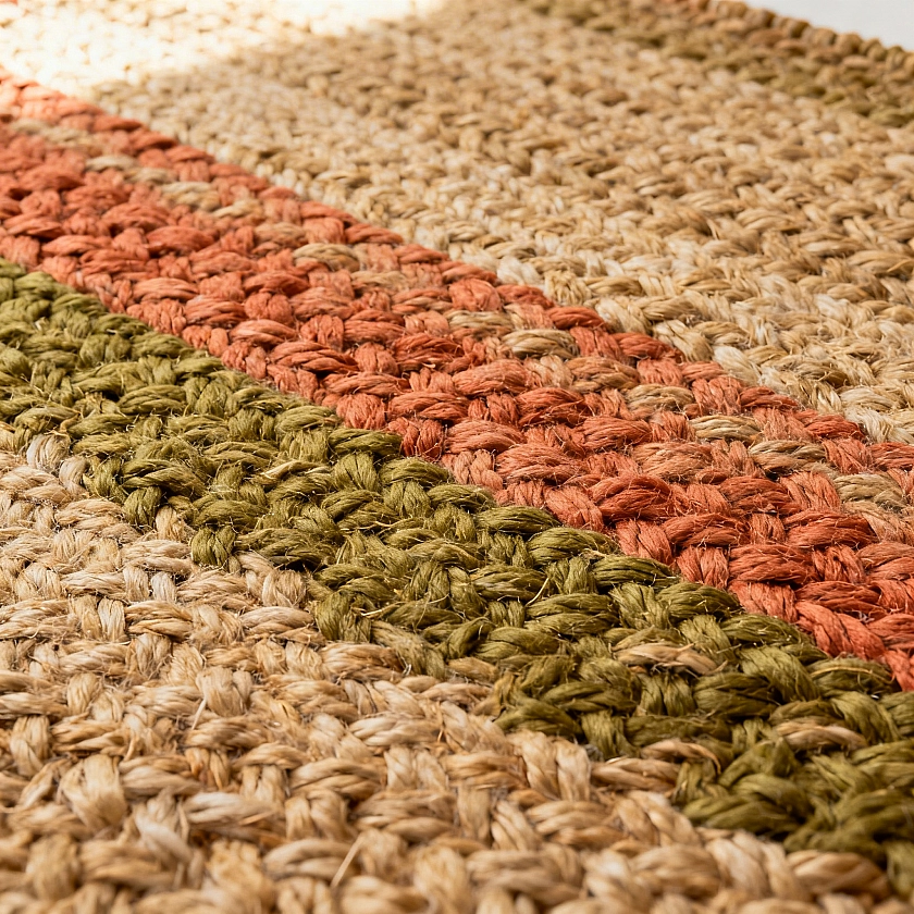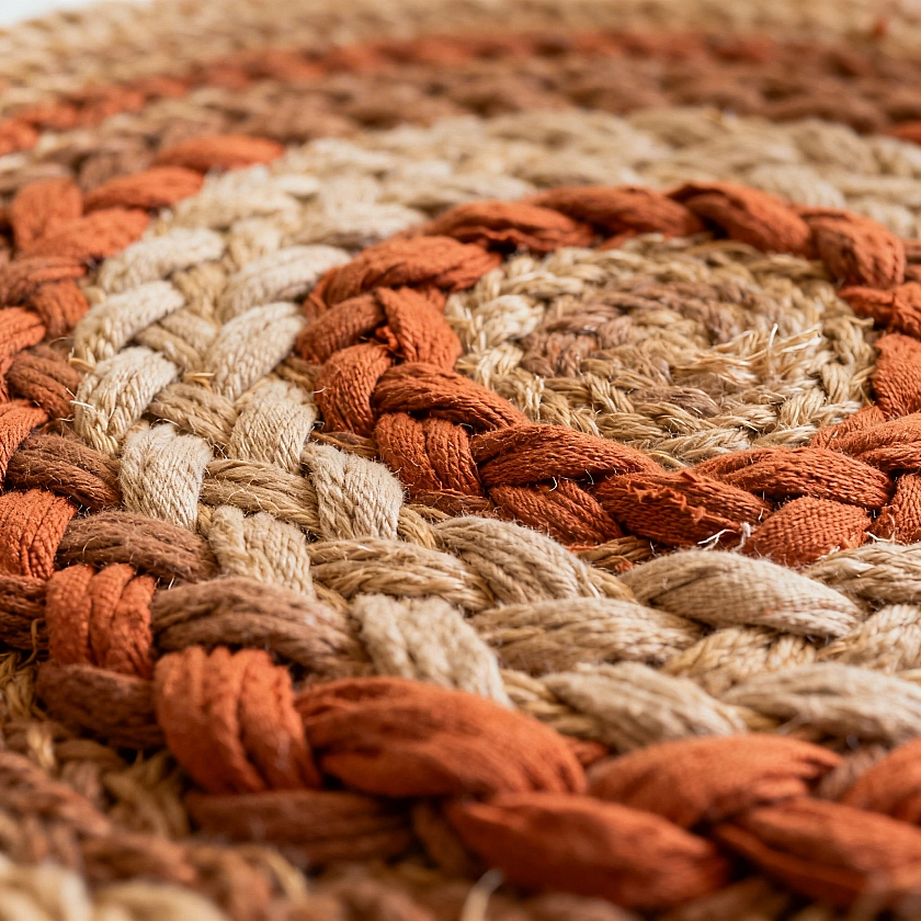 Когда коса будет готова, начните формирование коврика. Возьмите начало косы и скрутите по спирали. Фиксируйте витки, сшивая их прочной нитью или связывая короткими обрезками тех же трикотажных полосок. Прошивайте или связывайте каждый виток, двигаясь по кругу, и следите за формой. Если витки легли неровно, распорите пару стежков и переделайте.