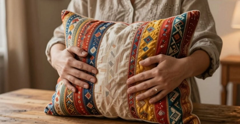 Из плотной ткани бывших штор шьют наволочки для диванных подушек. Их несложно оживить: добавить декоративную машинную строчку, сделать оттиск штампом или нанести рисунок через трафарет. Если сшить плоские подушки и прикрепить по углам верёвочки, они превратятся в удобные сидушки для стульев и табуретов.