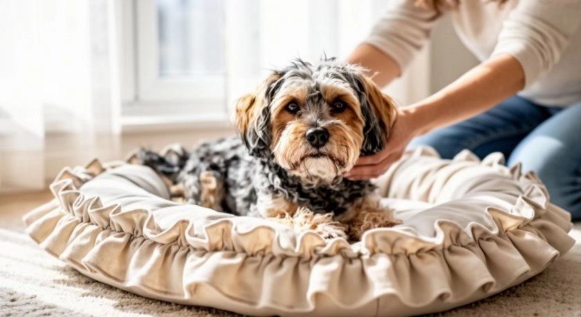 Из большого куска прочной синтетической ткани можно сшить лежанку даже для крупной собаки. Такая вещь прослужит долго и обойдётся без серьёзных затрат.