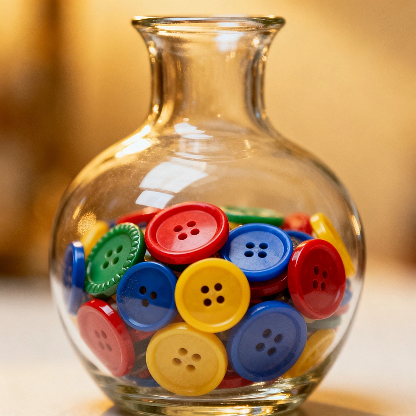 И наконец, самый простой способ — декоративный наполнитель. Насыпьте красивые пуговицы в прозрачную вазу необычной формы, бутылку или под стеклянный абажур. Получится самостоятельный арт-объект для полки, стола или подоконника. В эту же ёмкость можно добавлять пуговицы из новых вещей — тогда под рукой всегда будет нужный размер или цвет, если вдруг понадобится срочно заменить потерянную пуговицу, пишет источник.