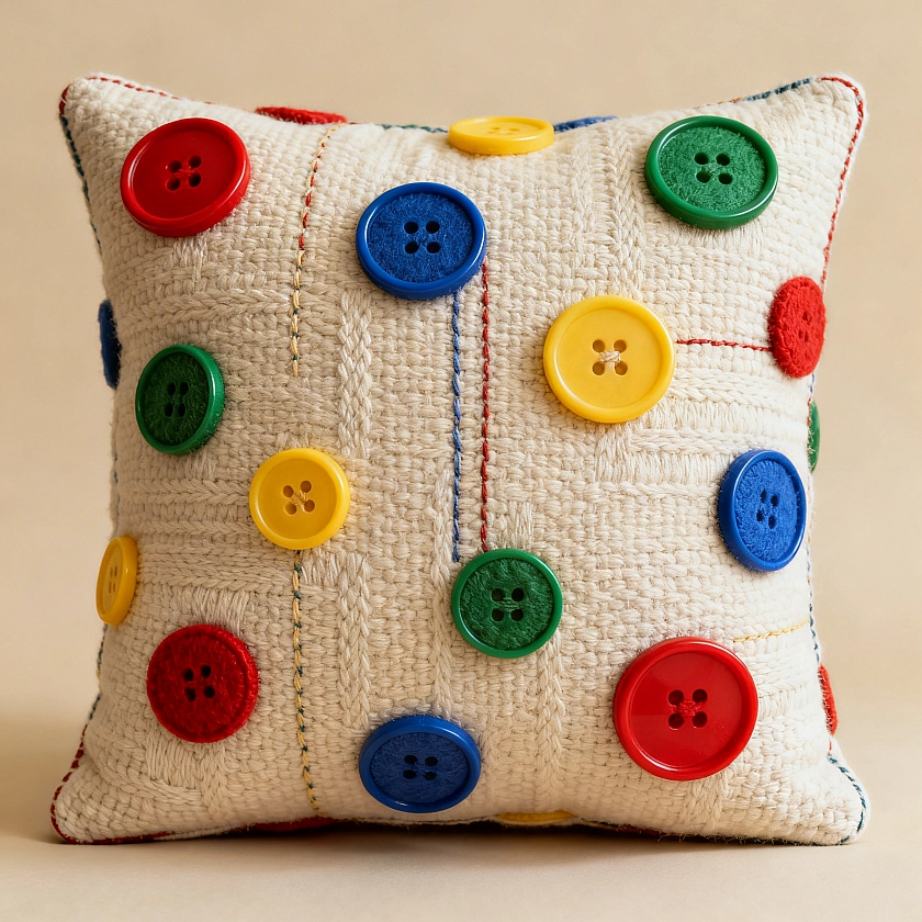 Начните с текстиля. Наволочку, подушку или плед можно обновить за один вечер. Пришейте пуговицы разных размеров и цветов: сплошным узором, по контуру, в форме цветка или абстрактного рисунка. Этот способ не только скроет дефекты, но и придаст вещи стильный вид.