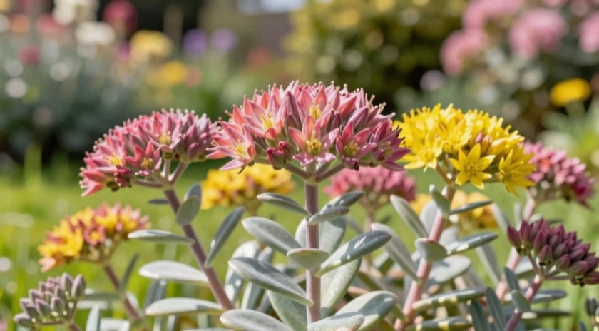 Низкорослые сорта создают плотные ковры, маскируя неровности рельефа и сдерживая сорняки. Среднерослые формируют яркие акценты в миксбордерах, а высокорослые становятся доминантой в осенних композициях. Седум гармонично сочетается с лавандой, эхинацеей, злаками и хвойными. Его используют в рокариях, на альпийских горках, в контейнерах и даже на зелёных крышах — прочная корневая система позволяет закрепляться на минимальных слоях грунта.