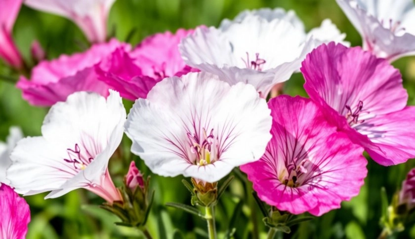 - Лаватера. Подходит годеции по всем параметрам: полив, свет, цветовая гамма и сроки цветения.