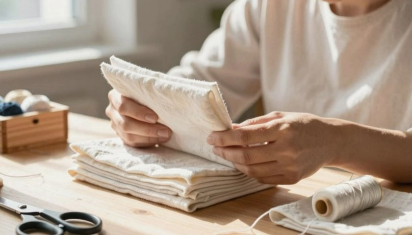 Для уборки пригодятся многоразовые салфетки. Ткань нарезают квадратами 30 на 30 сантиметров и обрабатывают края — оверлоком или простой подгибкой. Такие салфетки отлично впитывают влагу и выдерживают множество стирок.