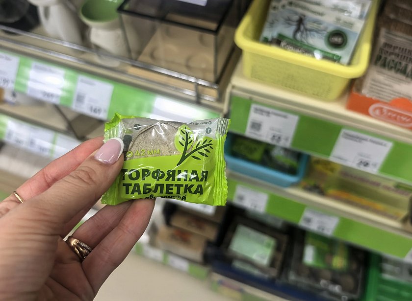 Первое, что я взяла — торфяные таблетки. Работают максимально просто: заливаешь водой, ждёшь пару минут — и можно сажать семена. Никаких мешков с землёй и рассыпанного грунта по квартире.