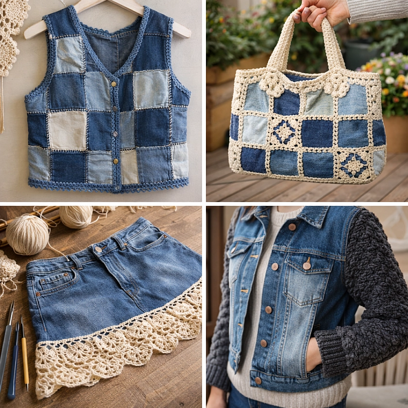 У каждой из нас в шкафу лежат джинсы, которые уже не сидят, или куртка, которую мы давно не надеваем. Но выбросить их жалко — столько воспоминаний, столько тепла связано с этими вещами. Я долго не решалась отправить их в переработку, пока не увидела, как мастера соединяют деним с вязанием. Так появляются уникальные, стильные вещи с историей, которых нет в магазинах.