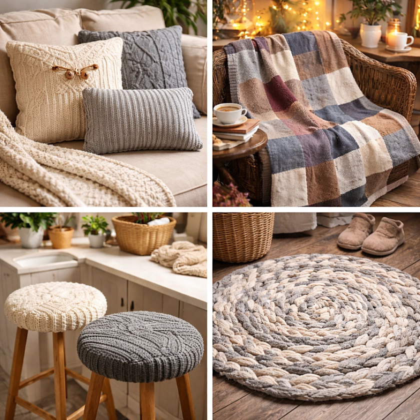 Старые растянутые свитера никогда не выбрасываю — делаю потрясающие вещи для дома: 3 супер уютные идеи