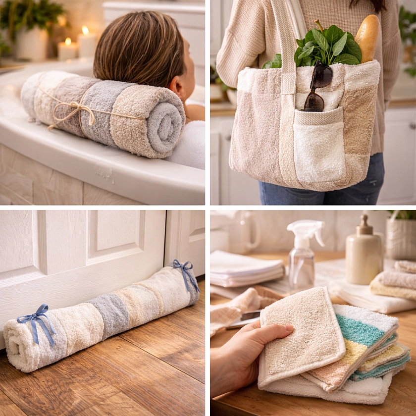 В каждом доме есть вещи, которые мы привыкли хранить на случай, если они вдруг понадобятся. Старые полотенца — яркий пример таких предметов. Они занимают место в шкафу, и мы не решаемся их выбросить, но и использовать по назначению уже не хотим. Однако это идеальный материал для создания уютных и практичных вещей для дома!