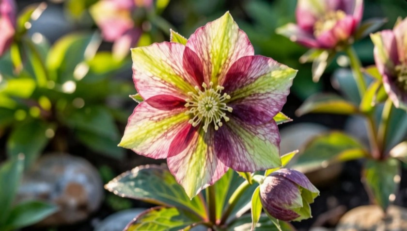 Растение для тех, кто хочет забыть об укрытиях. Оно зацветает в марте или начале апреля, часто пробиваясь через остатки снега. Цветы и вечнозелёные листья выдерживают морозы до -10 градусов. Морознику нужен холод для закладки цветочных почек. Старые листья до цветения не срезают — они защищают почки.
