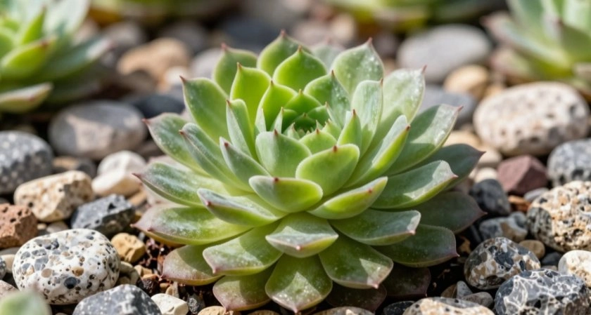 Суккулент выдерживает весенние заморозки до -10 градусов. Как только сходит снег, он трогается в рост. Молодило идеально для альпийских горок и каменистых садов. Губителен для него не холод, а застой воды во время оттепелей, поэтому нужен дренаж.