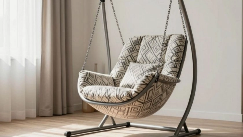 Интересный вариант для квартир с небольшим количеством жильцов или для маленьких комнат, где диван занял бы всё пространство. Жёсткие качели из прутьев удобнее для долгого сидения, чем мягкие вязаные — они лучше держат форму.