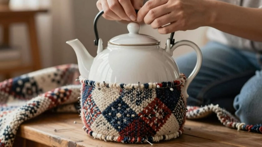 Для удобства использования можно пришить завязки или пуговицы, чтобы чехол легко снимался и надевался. Такой подогреватель помогает дольше сохранять чай горячим и экономит электроэнергию — не нужно постоянно кипятить чайник заново.