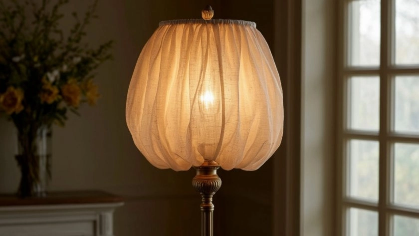 Тюль нарезаем на полосы или оставляем цельным куском, в зависимости от задумки. Ткань слегка натягиваем на каркас и фиксируем клеем. Когда основа схватится, начинаем создавать объём — лоскуты присбариваем в мягкие складки, формируя «облако». После полного высыхания такой абажур становится твёрдым и держит форму. Свет через тюль проходит мягко и рассеянно. Комната сразу преобразиться.