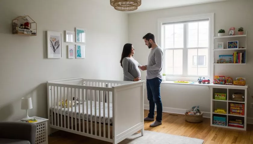 Оптимальное время — за несколько дней до предполагаемой даты родов. Этого достаточно, чтобы мебель хорошо просохла, помещение проветрилось, а в доме установился чистый микроклимат еще до приезда малыша и мамы из роддома.