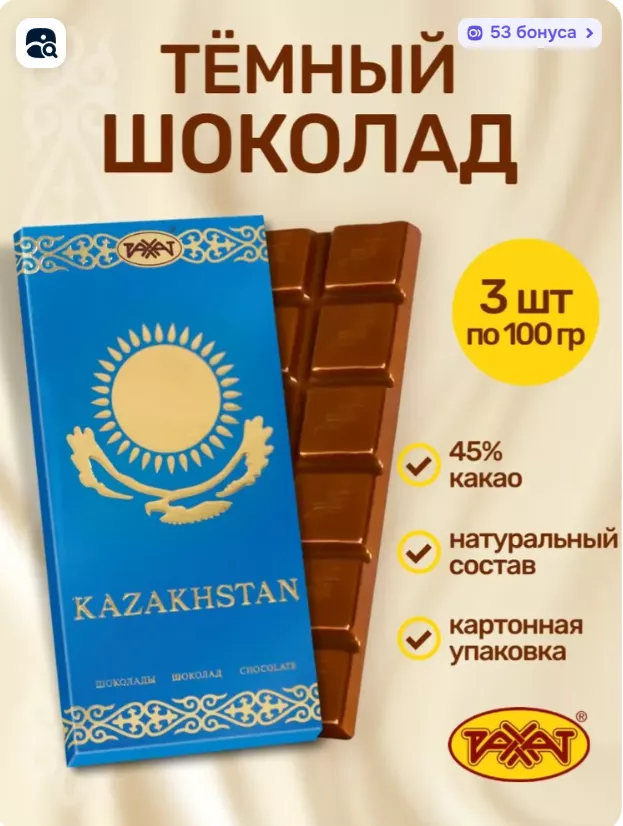 Шоколад РАХАТ «Казахстанский» — достойный выбор за свою цену. Приятный состав и отличный вкус! Рекомендую попробовать.